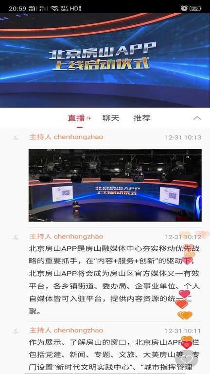 北京房山是一款由房山融媒体中心推出的一款新闻阅读类app,里面包含了海量的新闻信息,大小事情全部都有,实时推送,用户可以第一时间知道。软件还可以收看新闻直播,对你感兴趣的资讯可以收藏一下,大数据就会根据你的偏好推送更多的相关文章,不仅仅只有新闻资讯还有民生新闻,关注民生动态。