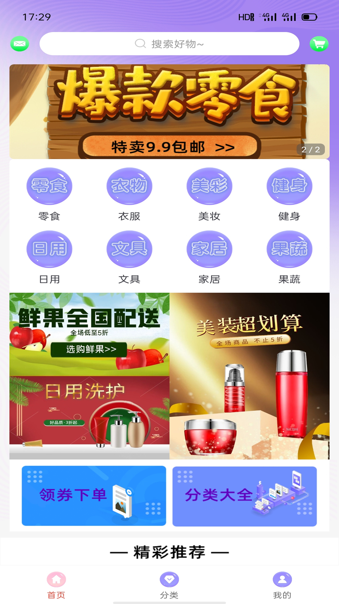 1、分类:有那么多不同种类的标签,把各种商品详细的分类,信息展示非常新鲜直观。