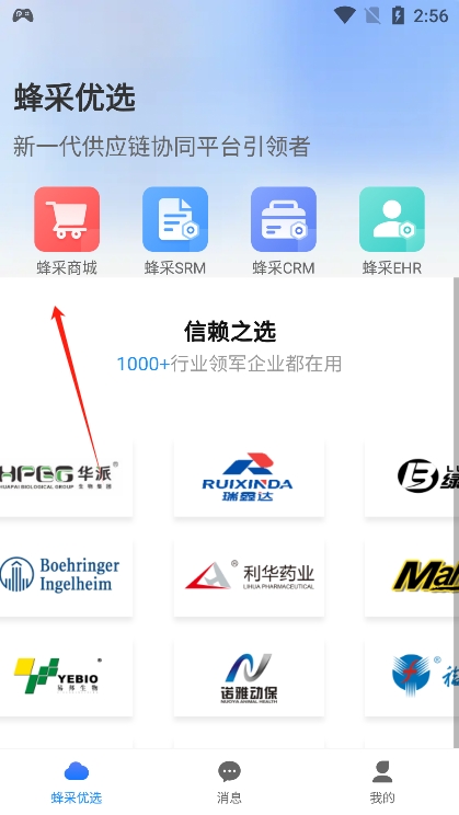 3、来到主页我们可以点击蜂采优选商城查看