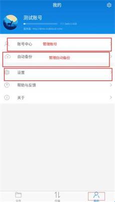 3、进入我的中可以进入账号中心或管理自动备份等。