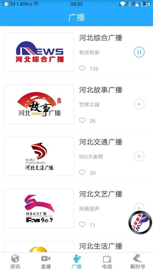 2、所有的电视台内容也可以在软件中进行查看,河北地区的9个广播电视台,以及所有的电视台直播内容,都可以在线观看;