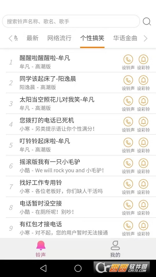 精铃声分类,原创歌手、封面、恶搞、影视歌曲、动漫等。