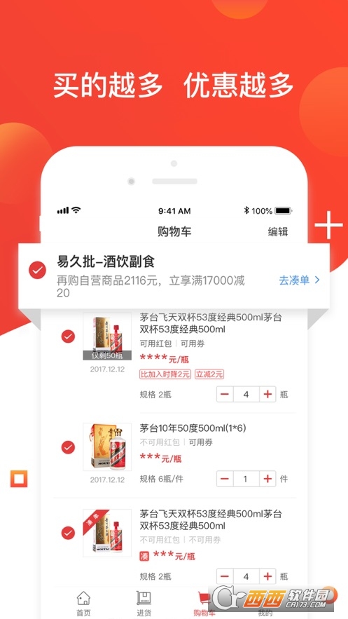 4、购物车:便利的购物工具,一键下单,收货无忧;
