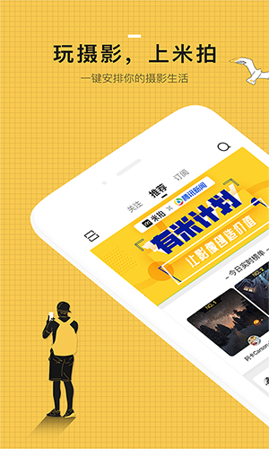 米拍摄影app是一款由成都可以文化传媒有限公司发行的专门供摄影师准备的手机拍照软件,该软件中是有超过300万+的摄影爱好者已加入米拍摄影社区。在这里,用户们是可以有很多的活动的,欣赏优秀摄影作品,学习摄影知识,结识同好摄影师,发布摄影作品,交流拍摄经验,建立个人摄影空间,参加摄影活动,赢取摄影大奖等等,是摄影师们装机必备app。
