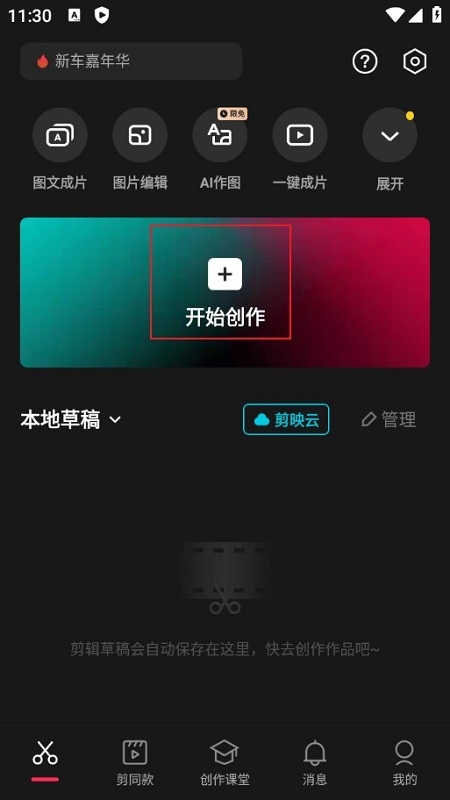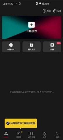 1.打开剪映应用,点击“开始创作”