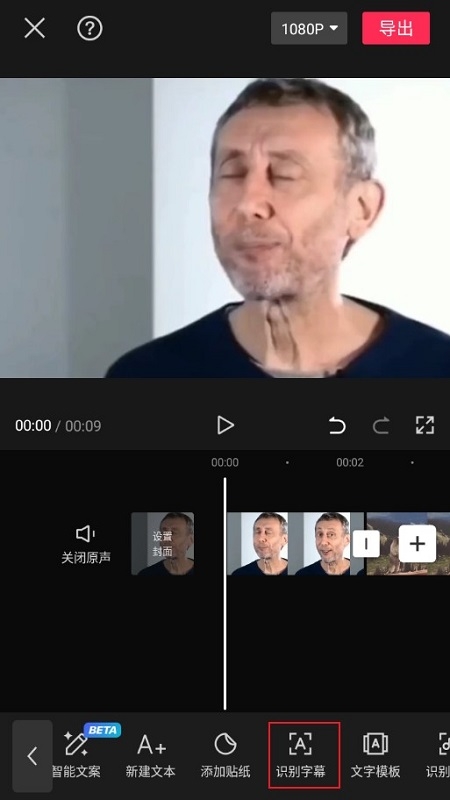 3.在视频编辑界面下方找到导航栏中的“文字”选项,点击进入后找到“识别字幕”选项;