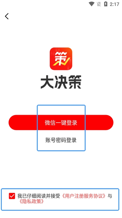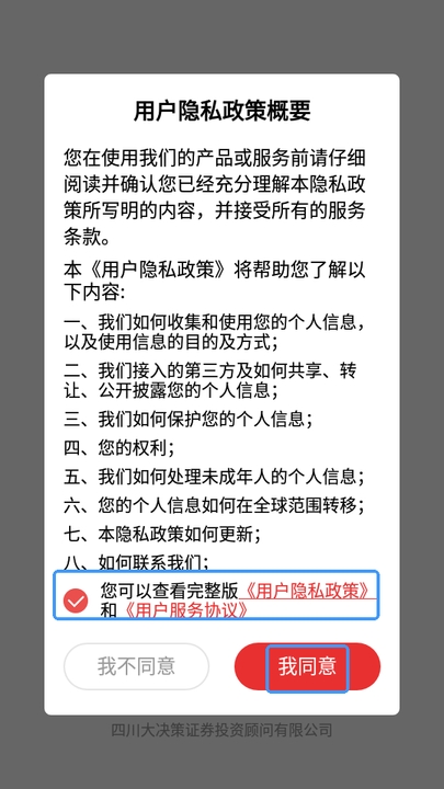 ·在本站下载打开大决策,阅读弹出的用户隐私政策概要,勾选,点击【我同意】;