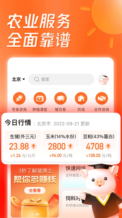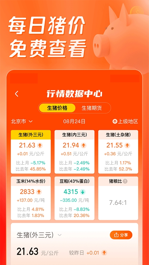 4、猪行情:免费提供全国各地猪价行情,让您实时掌握市场波动,再也不用怕卖低价。
