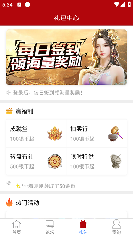 3、在“礼包”板块可查看和领取相关游戏礼包。傲世堂助手官方下载免费安装最新版本