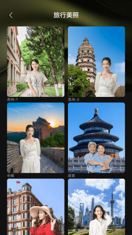 3、在旅行美照页面,就能一览无余所有自己更换背景的照片,便于查看;