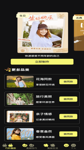 不同的美图模板以分类的方式提供,方便用户能便捷找到自己喜欢的样式制作;