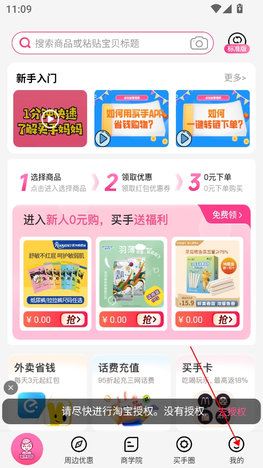 1、打开买手妈妈app,来到用户界面,点击下方的我的按钮;