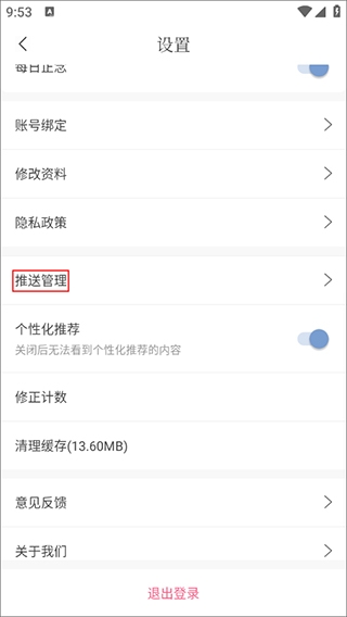 3、紧接着在设置的界面上找到“推送管理”按钮;