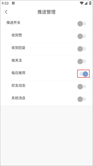 4、最后进入页面后,打开“每日推荐”开关按钮(打开后按钮显示为蓝色)即可。