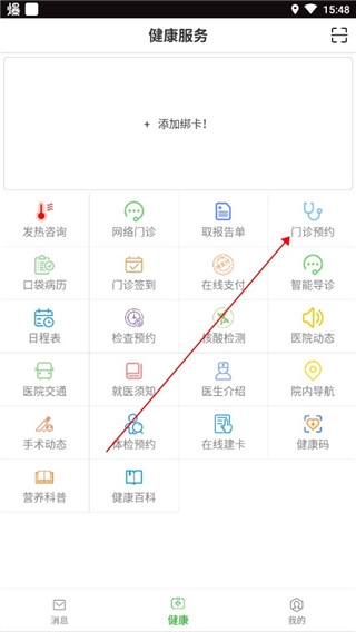 1、通过底部菜单栏进入温医一院的健康版块,选择其中的门诊预约。