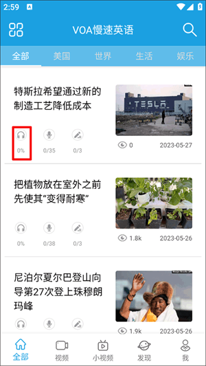 发现--“学一学”模块含有配套的voa学习资源,视听说相结合,学习效率duang的就提高了。