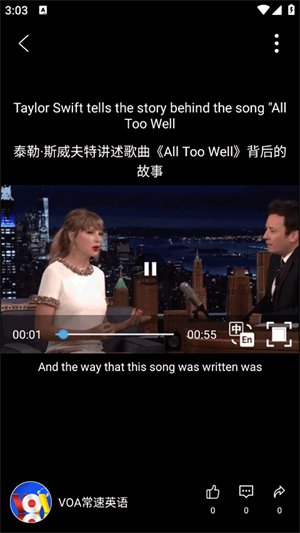 4、在小视频中,你可以通过点击具体视频在这里对视频内容进行中英文互译。