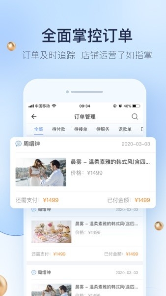 订单管理:订单状态清晰分类,接单改价方便快捷,顾客来访提前提醒,日程安排更顺心
