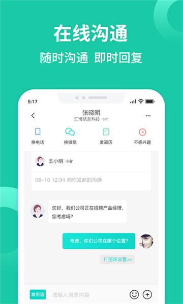 3. 提供简历快速处理功能,只要发送简历,必定会收到回复,无需盲目等待。