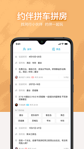 六、点击约伴板块,只要有时间、地点,就可以发布约伴信息了。也可以通过时间、地点来筛选你想要的约伴信息。