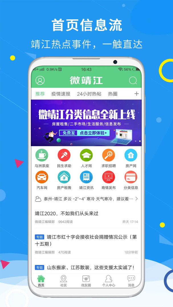 微靖江是一款专为居民提供便捷生活服务的安卓应用,通过微靖江,居民可以轻松获取本地新闻资讯、实时天气预报、城市交通信息等各种实用功能,微靖江还为用户提供了在线支付、水电煤缴费、违章查询等便捷生活服务,让居民在家就能处理日常琐事,住户管理模块能够方便居民进行物业报修、园林绿化反馈等事项,大大提高社区居民的生活品质,微靖江还兼具社交属性,居民可以在平台上发布动态、分享生活,与邻居们互动交流。