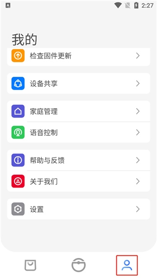 3、点击我的,它为用户提供的设备共享、检查固件更新、家庭管理、语音管理等等功能。