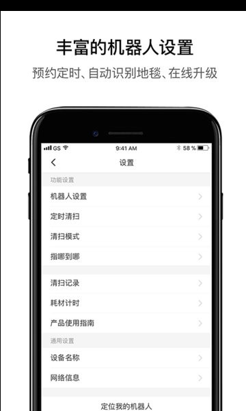 3、丰富机器人设置,清扫记录、耗材计时等任你使用。