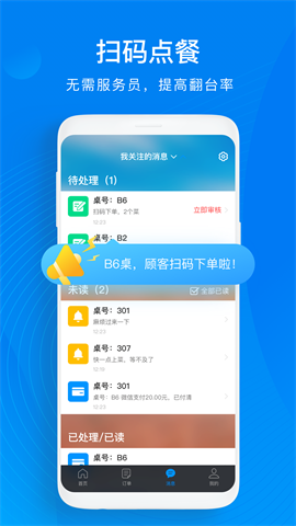 3、适配服务铃消息,可接收催菜、呼叫服务员消息