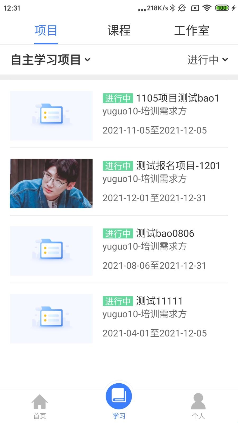 2、项目:可以查看学员参加的培训课程、培训项目。