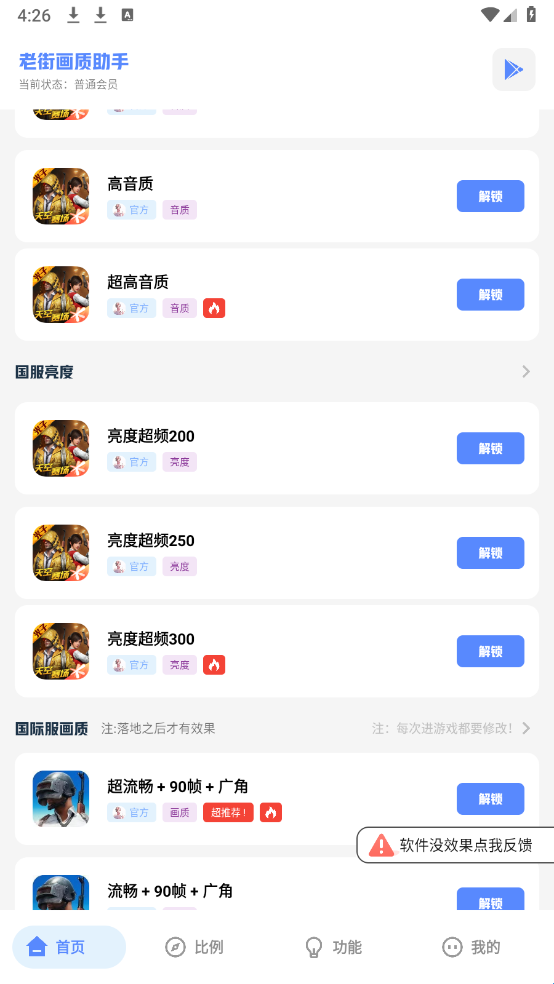 这是一款非常不错的画质修改软件,软件内置了多种修改游戏画质的工具,而且是免费提供的,用户可以自定义修改游戏画质,此外,还可以使用多种平滑度,还拥有超宽助手等辅助工具,这让用户可以解锁更优质的高清游戏体验,并且该款应用程序无论是国际服版本游戏还是国服版本都可以进行修改,非常的方便实用并且便捷。