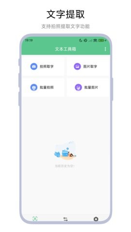文本工具箱手机版是专门用于文本图片处理的工具,有了它就可以帮助用户轻松解决各种问题,不仅可以提取图片当中的文字,还可以进行识别文本语言,将提取的文字直接转换成为本和文档,同时还可以保存编辑手机文档,出门在外也能够处理工作内容。