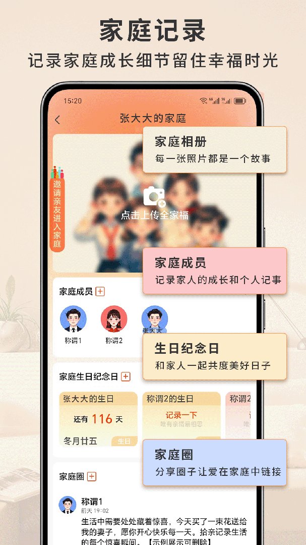 5、共享重要的信息,能够与家族中的所有人一起共享信息,及时了解家族的变化