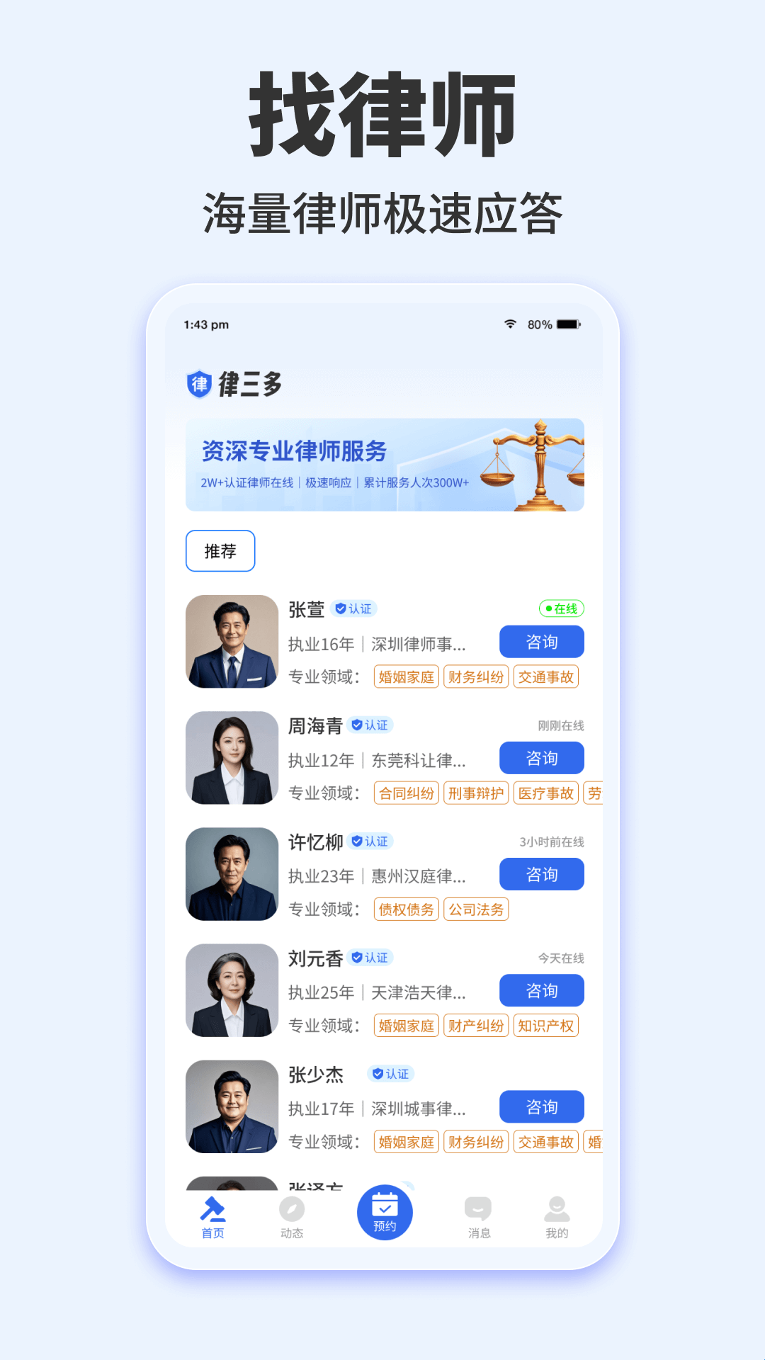 1、在线咨询,用户可通过图文、语音或视频方式与律师实时沟通,快速获取专业法律建议。