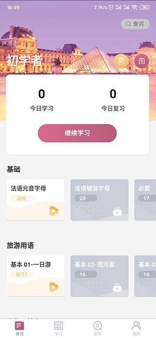 1、下载并安装莱特法语背单词app,然后根据自身学习情况选择合适阶段;