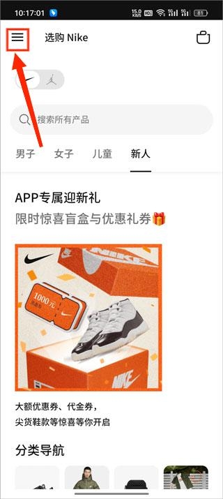 1、打开Nike,点击搜索要购买的鞋子。