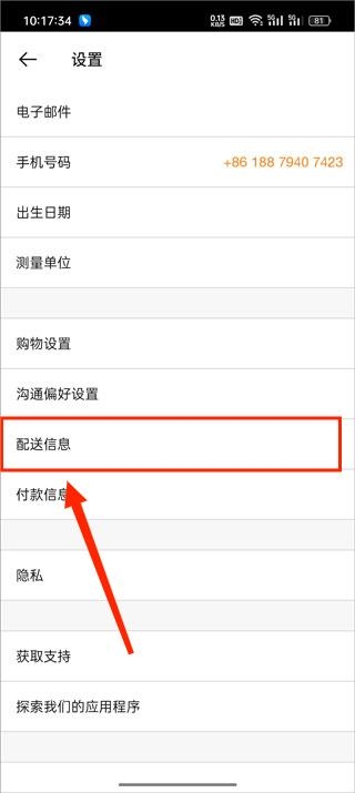 3、进入设置后选择【配送信息】