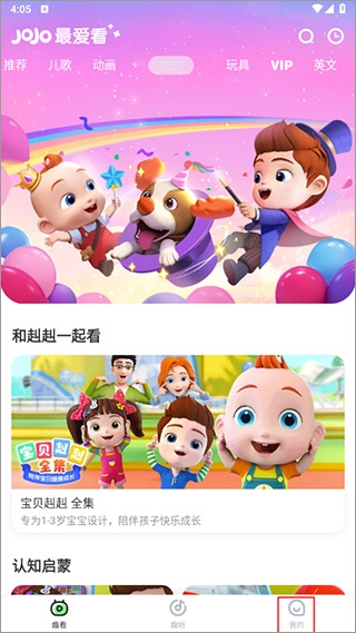 1、打开超级宝贝JoJo最新版app,点击“我的”;