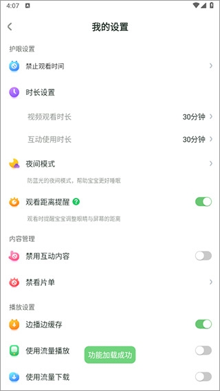 5、点击开启就会显示功能加载成功即可。