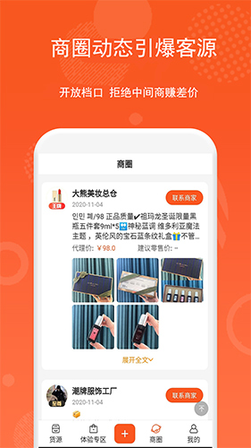 求货找货:有货源不仅支持微商找货,对于平台暂缺的货源,用户可以直接发布求货信息,等人“送货上门”;