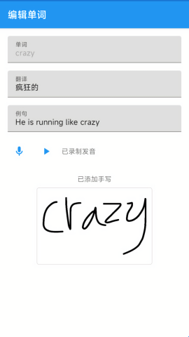 2.在其中不仅要输入单词本身和翻译内容,还需要输入例句、发音、笔迹等。