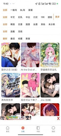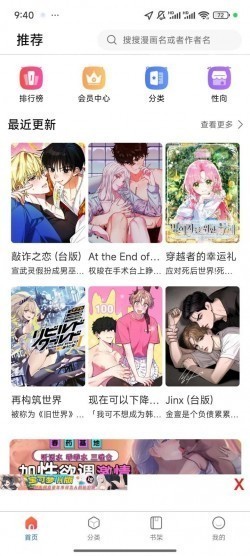 个性化阅读设置:支持日间/夜间模式切换,保护用户视力;提供横屏/竖屏自由切换,适配不同阅读场景。同时,支持自定义书架分类,用户可快速整理和管理喜爱的漫画。