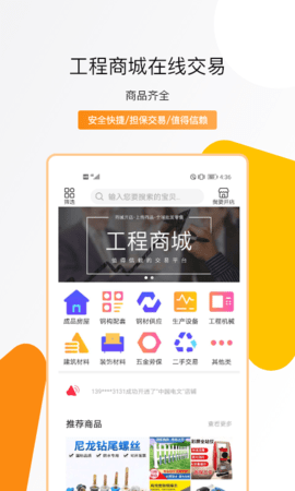 8.工程商城包含全产业链商品,多图浏览安全快捷,指尖滑动让您随心所欲购宝贝