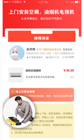 2、上门维修:维修洗衣机,维修空调,维修热水器,维修家具......