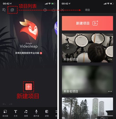 软件的界面和大部分的图片编辑软件都是类似的,我们可以直接在主页上新建项目,或者点击左上的项目列表,编辑已经创建的项目。