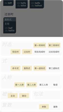 3,专业变化,轻松巩固,对于各种不同类型词汇变化的数据,用户自己可以更加轻松的来进行学习和复习所有的内容,所有词尾变化和数据内容都很清晰。