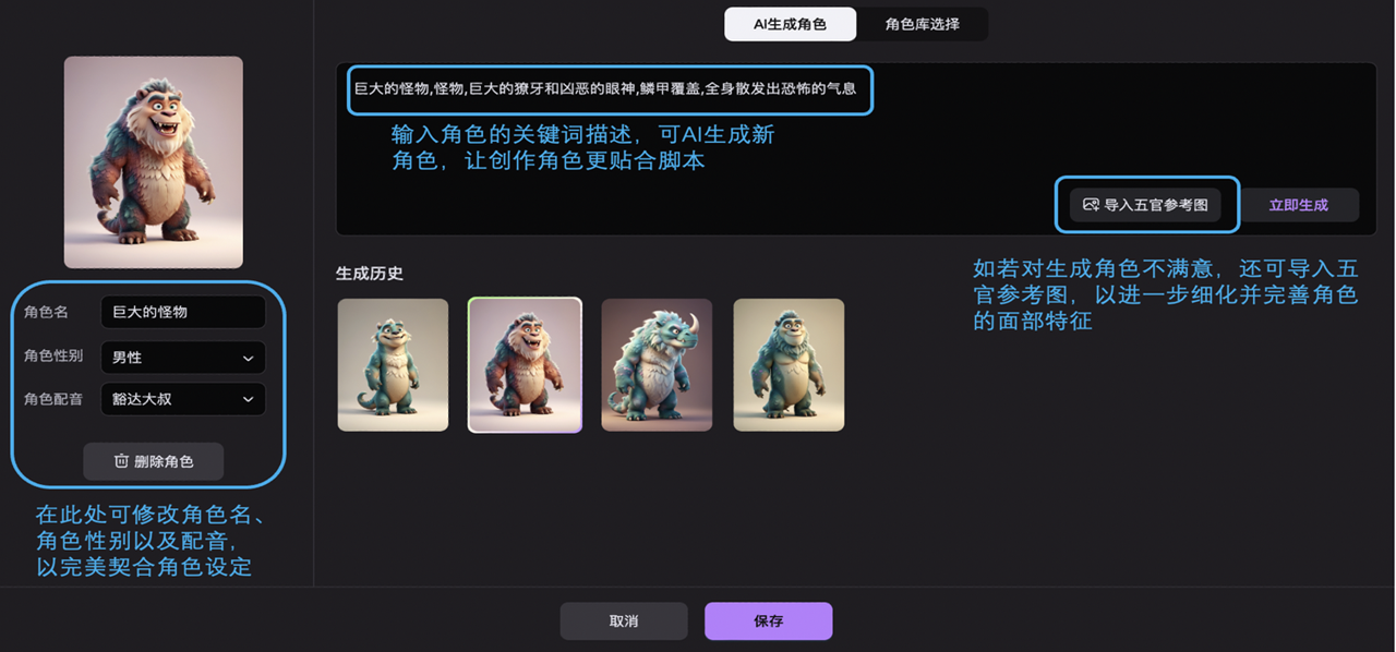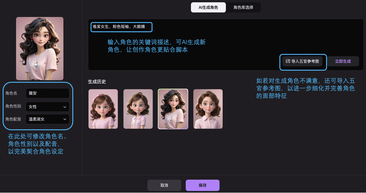 2、如果对生成的角色不太满意,可以点击“编辑”,重新自定义形象。
