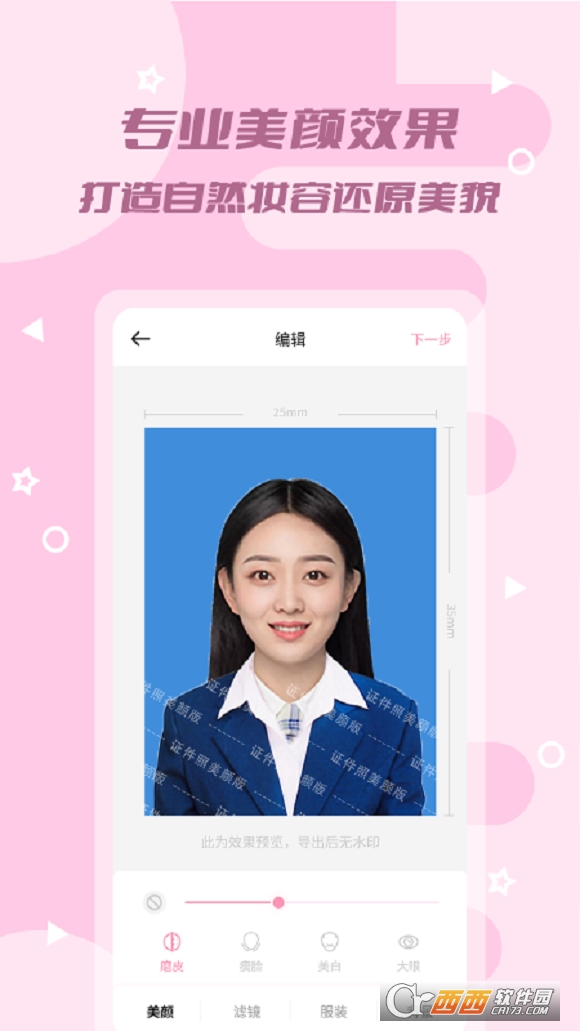 3、超自然的美颜效果为你打造最自然的证件照效果,让你的证件照非常的好看。