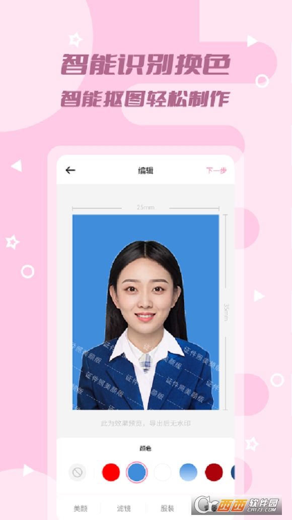 2、智能识别换色,智能抠图轻松制作,证件照更加美丽。