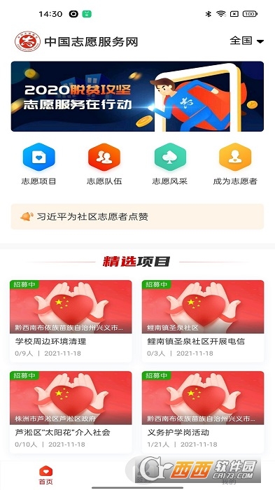 2.项目搜索,搜寻近期志愿项目,随时报名做志愿。