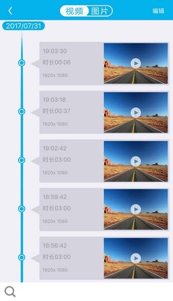 此软件通过WIFI连接行车记录仪硬件设备,能够通过手机完成直播预览,视频录音,拍照,可以将设备的录影和照片同步到手机,进行观看和分享,并对设备进行管理配置。